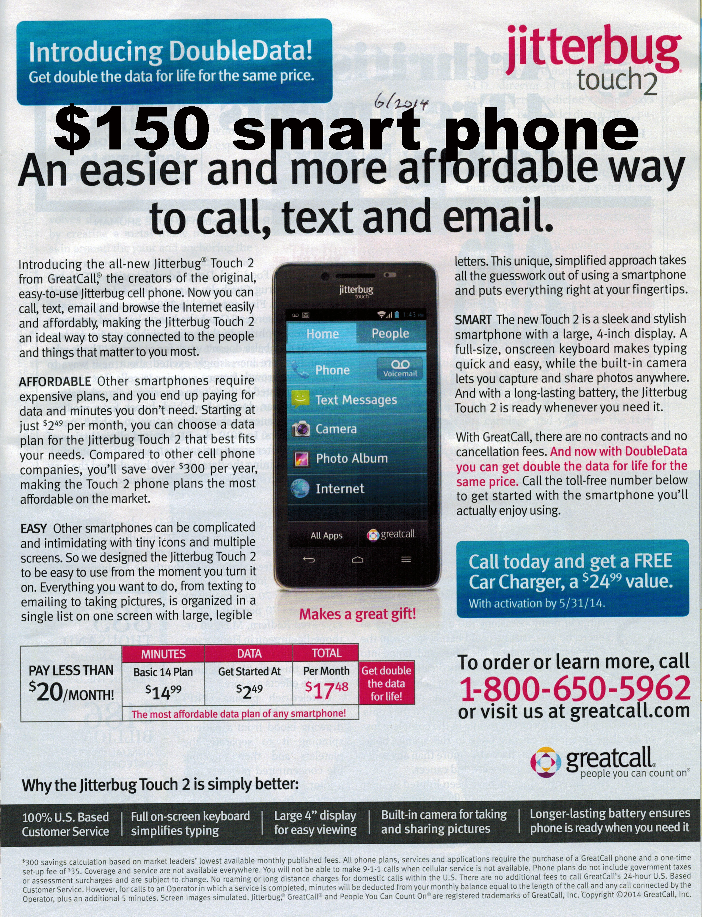 "GREATCALL" advertising in AARP magazine (likely T-mobile or AT&T)